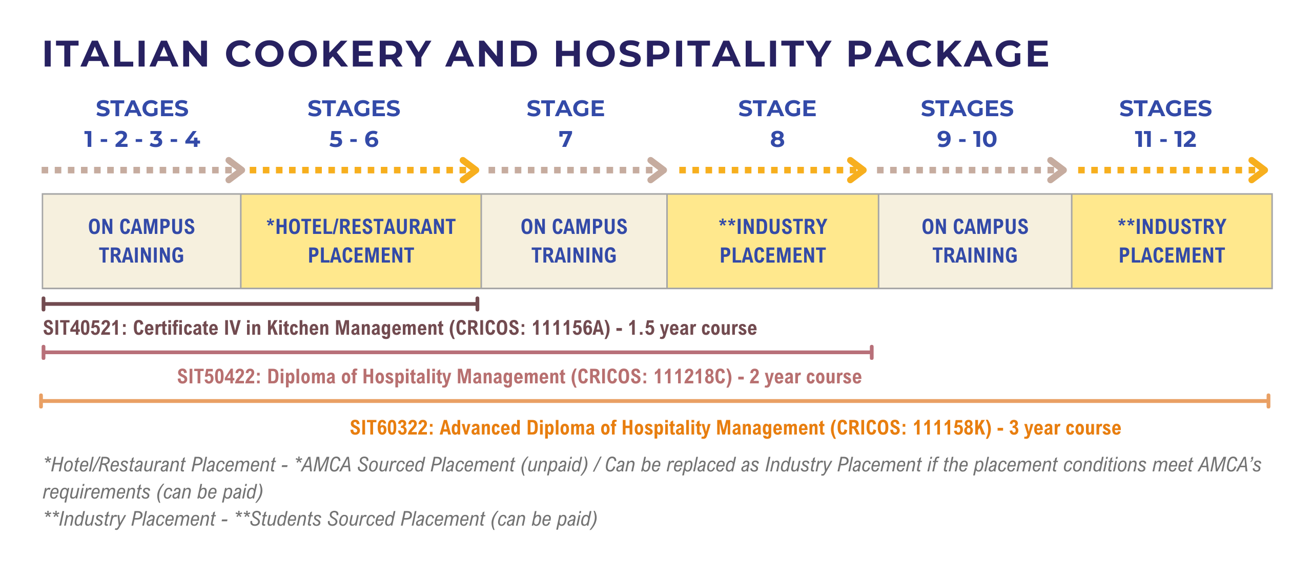 At AMCA, we understand that to be successful you need a balance of relevant skills and real-world experience. This course provides real workplace skills at an operational and supervisory level by giving you the skills needed to work in a commercial kitchen, incorporating management subjects. It is recommended that you complete Certificate IV in Kitchen Management and Diploma of Hospitality Management prior to commencing this course. This course incorporates many of the core units from the Diploma of Hospitality Management.